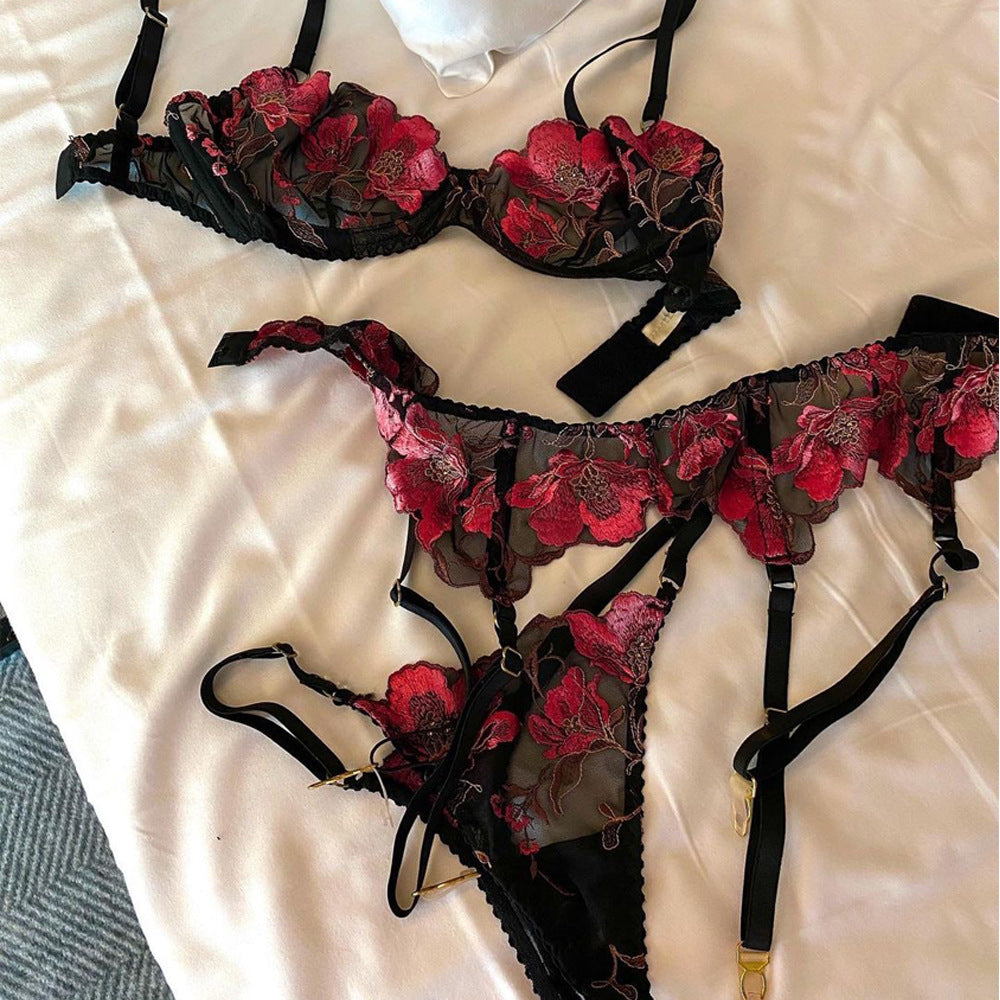 エンブロイダリーフローラルガーターボディストッキングドレス下用