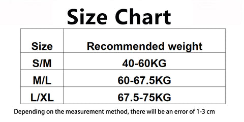 Weight: Recommended weight for 88-132lbs for size S/M, 132-148lbs for size M/L, 148-165lbs for size L/XL