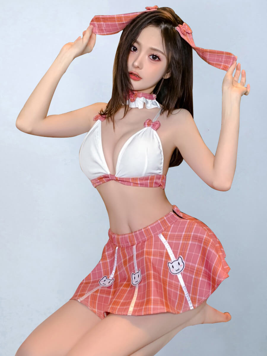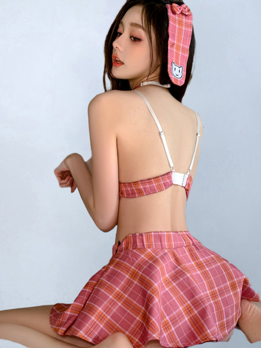 セクシーコスプレ女子校風チェック柄スカートセット