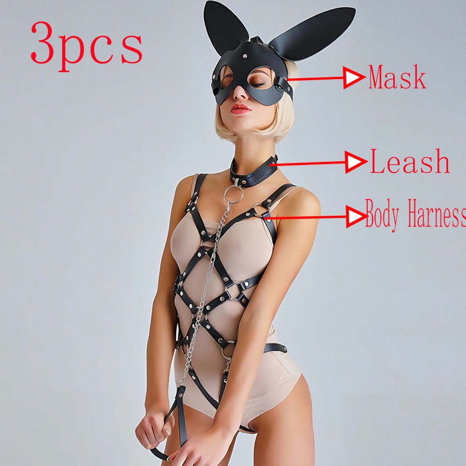 Design: Bunny Girl Restraints Kit - Each part of the pu leather harness restraints with locking buckles is detachable, no matter the total length, collar, wrist and ankle size, you can adjust the tightness.