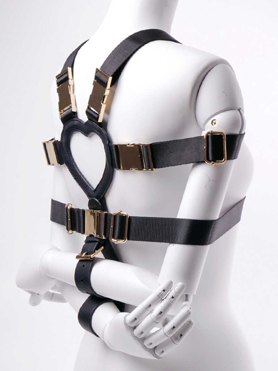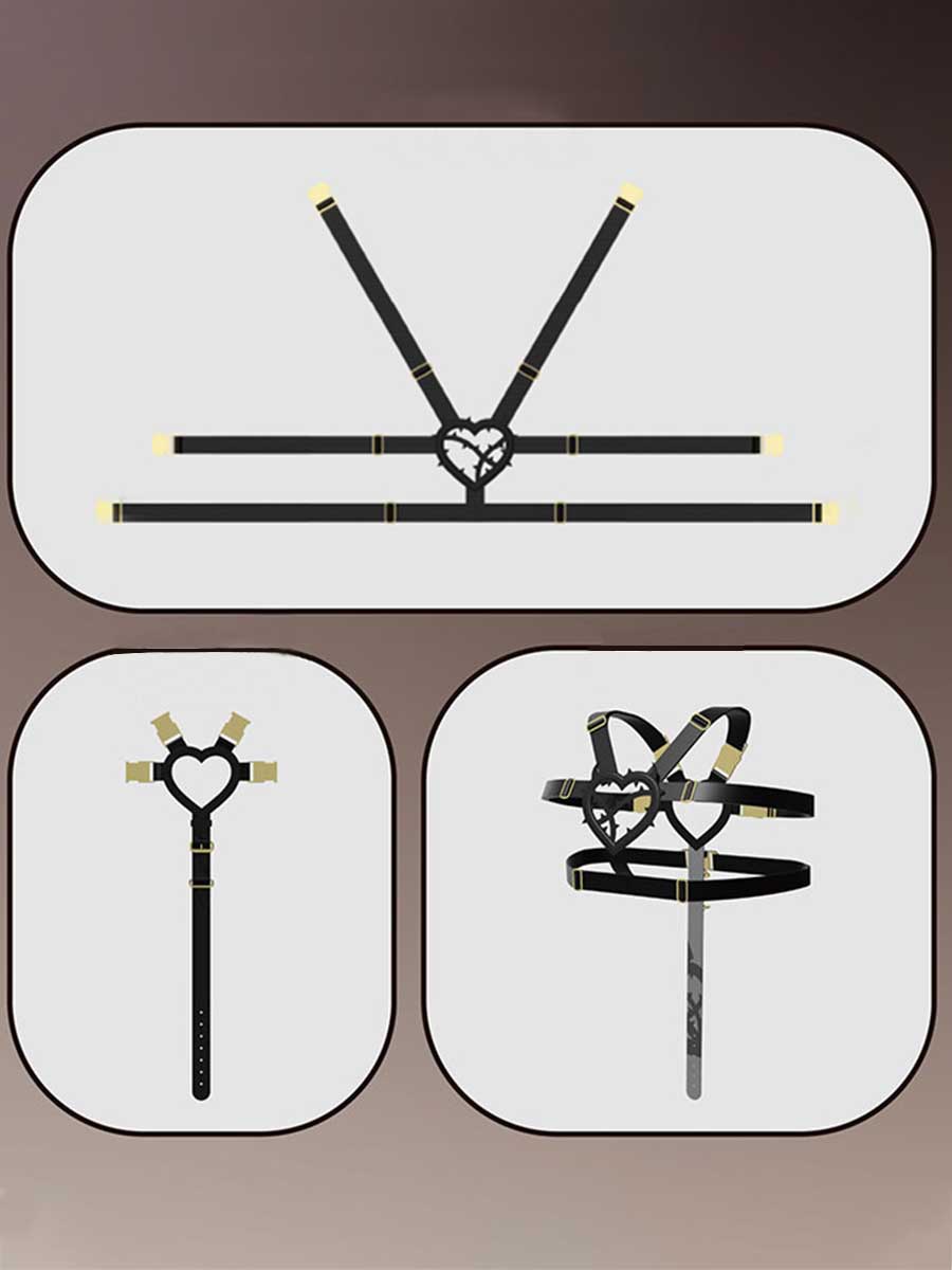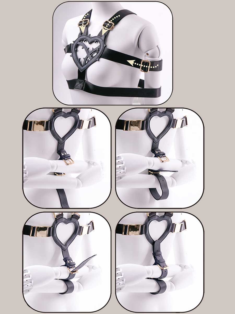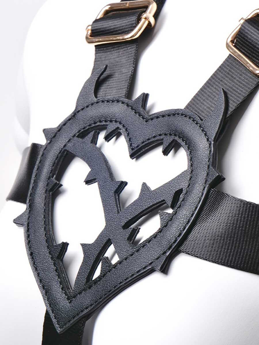 Design: Sexy leather harness top looks and feels like the real deal. It's the perfect accessory for a sleek and sexy look, featuring latex heart accents, and an adjustable back belt closure for a perfect fit every time.