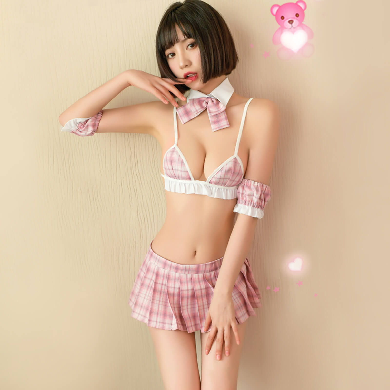 セクシーコスプレ JK パフスリーブランジェリー プリーツスカート アニメ衣装 ビキニセット