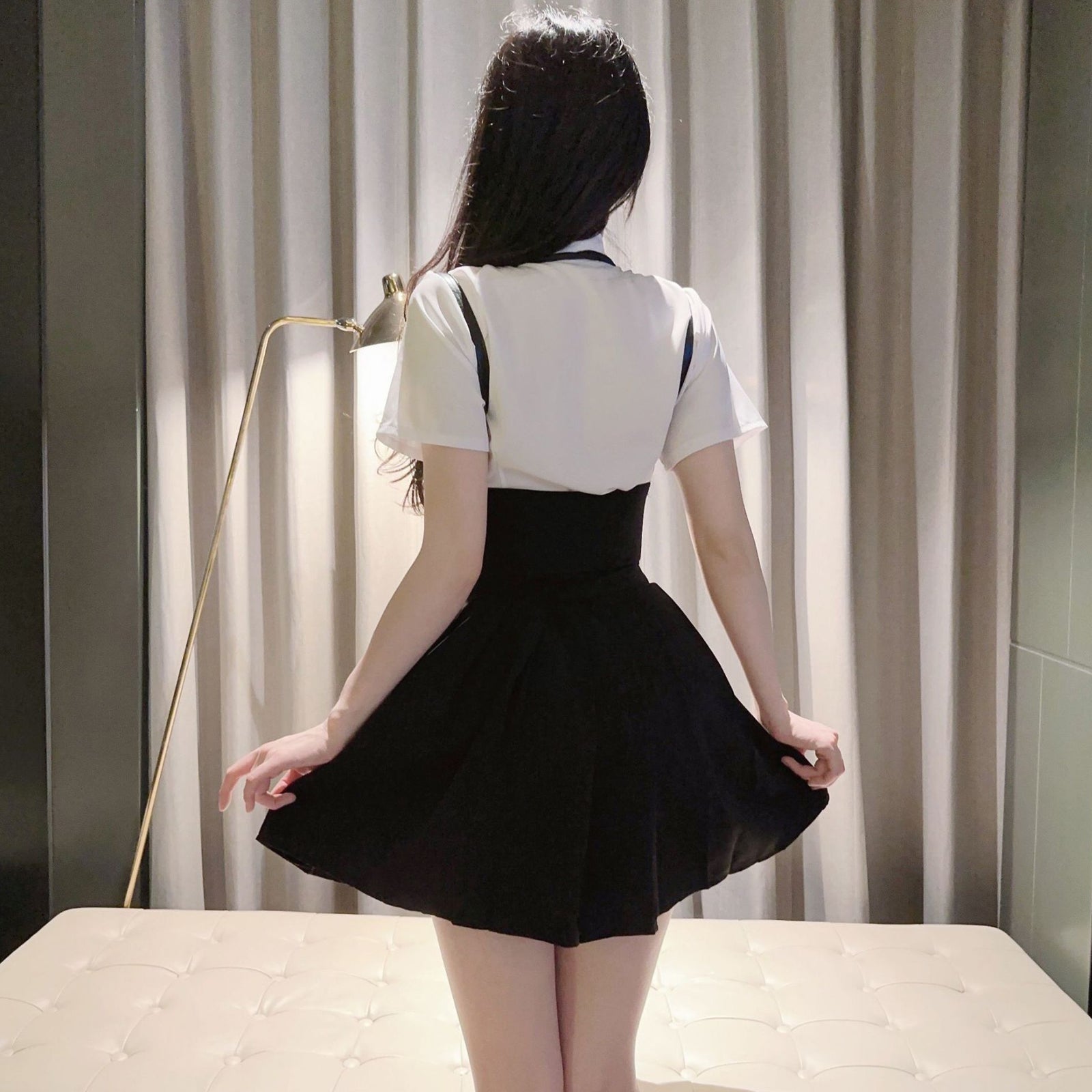 Product SPU: CS2L14456 Brand: Asrrss Color: White+Black Material: Polyester Size: S, M, L Weight:Recommended weight for 88-137lb Pattern: Plain Type: Neckline: Lapel Neck Sleeve Length: Short Sleeve Design: This sexy school girl costume featuring a white polo shirt, short sleeve, a front necktie accents, button up closure, a school crest patch, for a great cosplay costume look. Black mini skirt featuring pleated hem, will make you sexy, cute and attractive. And a matching wet look waist cinche with buckle, whether you're dressing up for a themed event or turning up the heat in the bedroom, this schoolgirl costume is sure to please. Occasion: Naughty Schoolgirl Outfits is perfect for cosplay party, Valentine's day, Christmas Lingerie, honeymoon, bedroom, bathroom, special night, lingerie party, sleepwear, nightwear, best gift choice. Package Including: 1*shirt+1*pleated skirt+1*necktie+1*suspender corset+1*crest patch