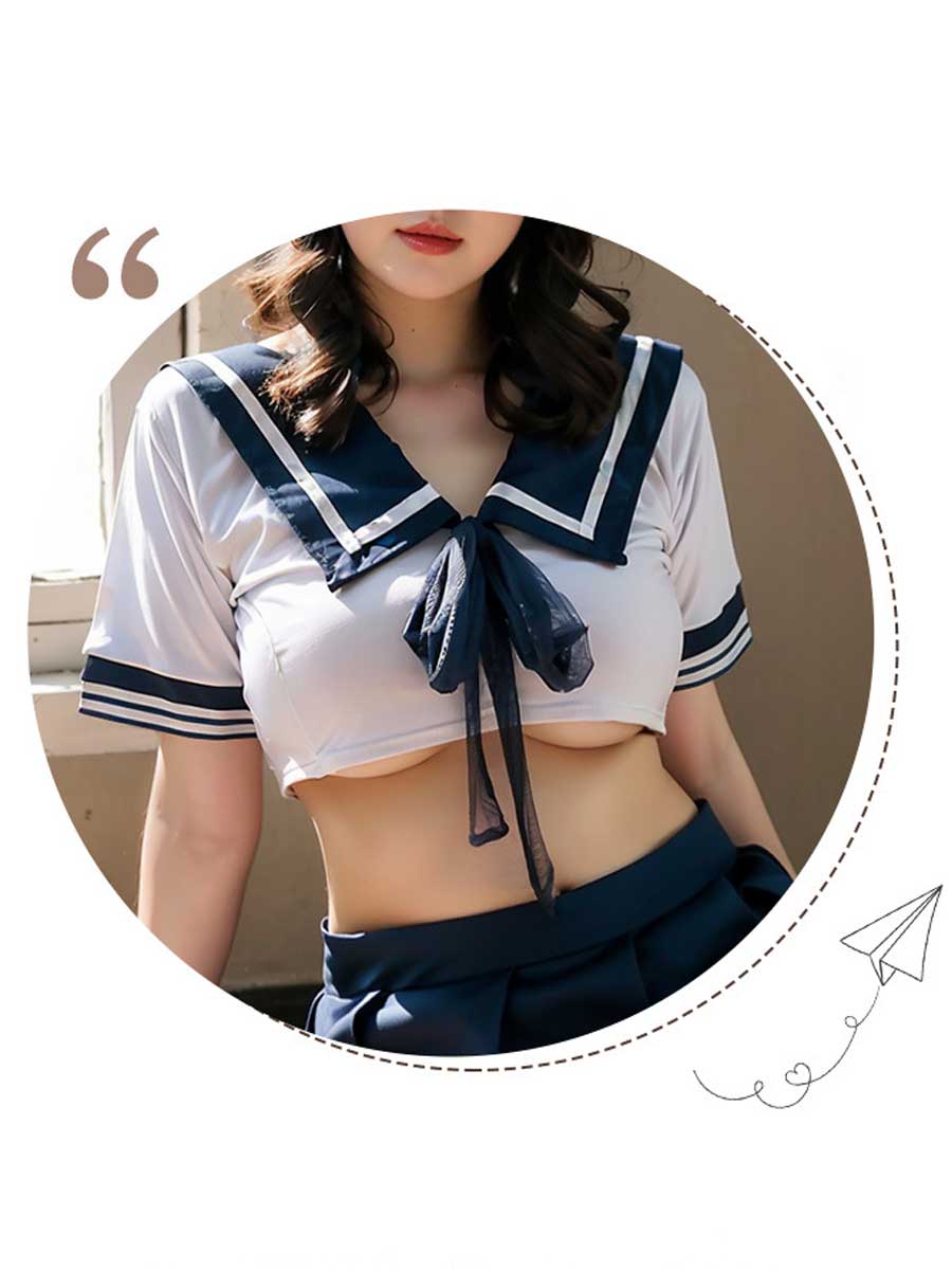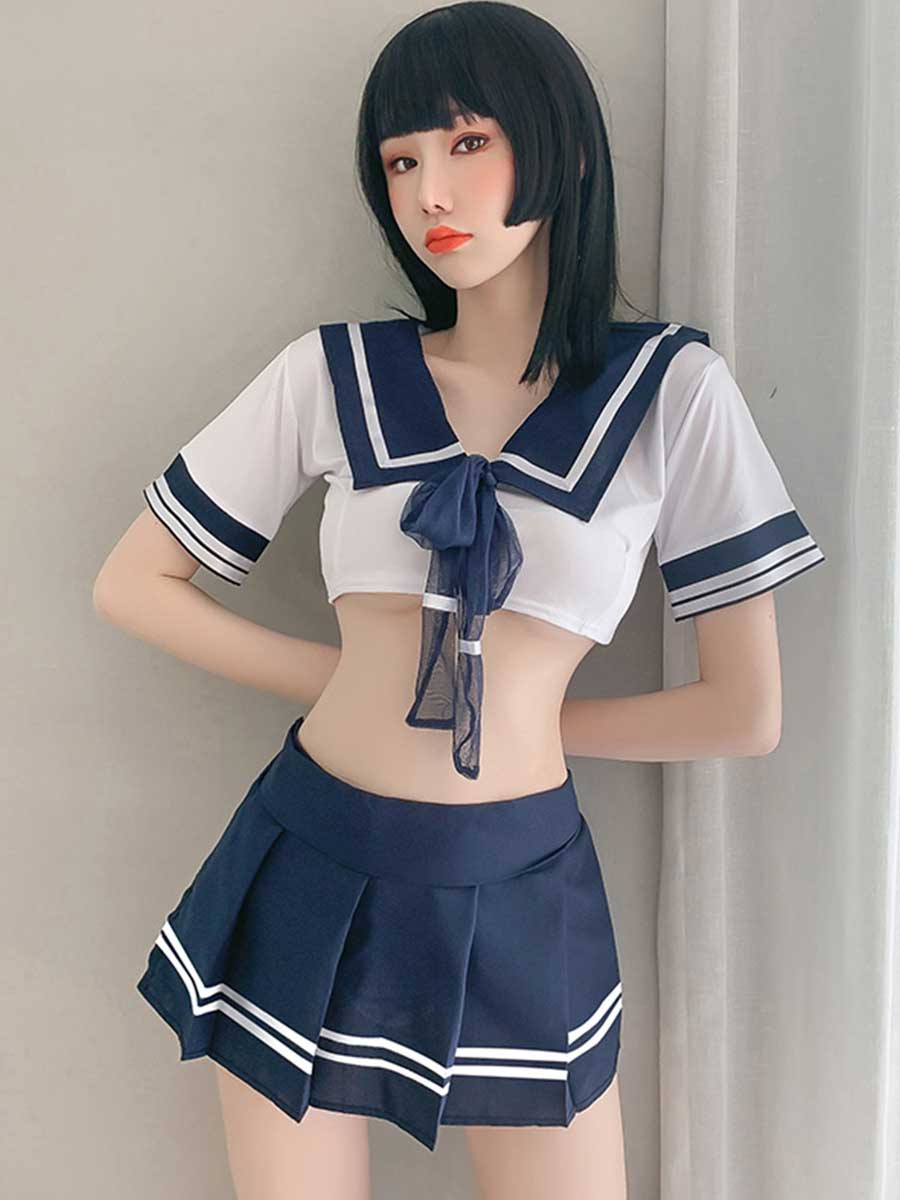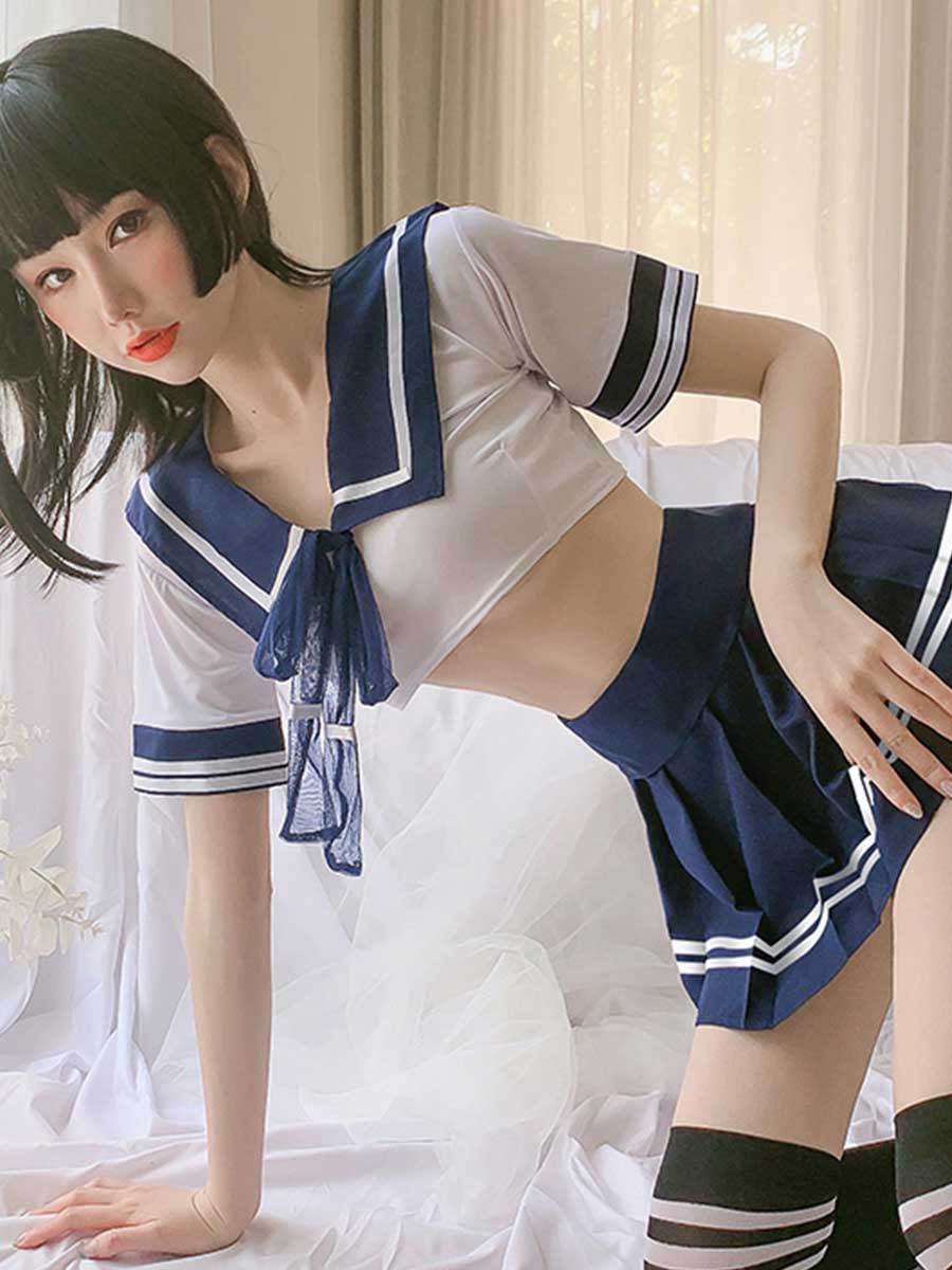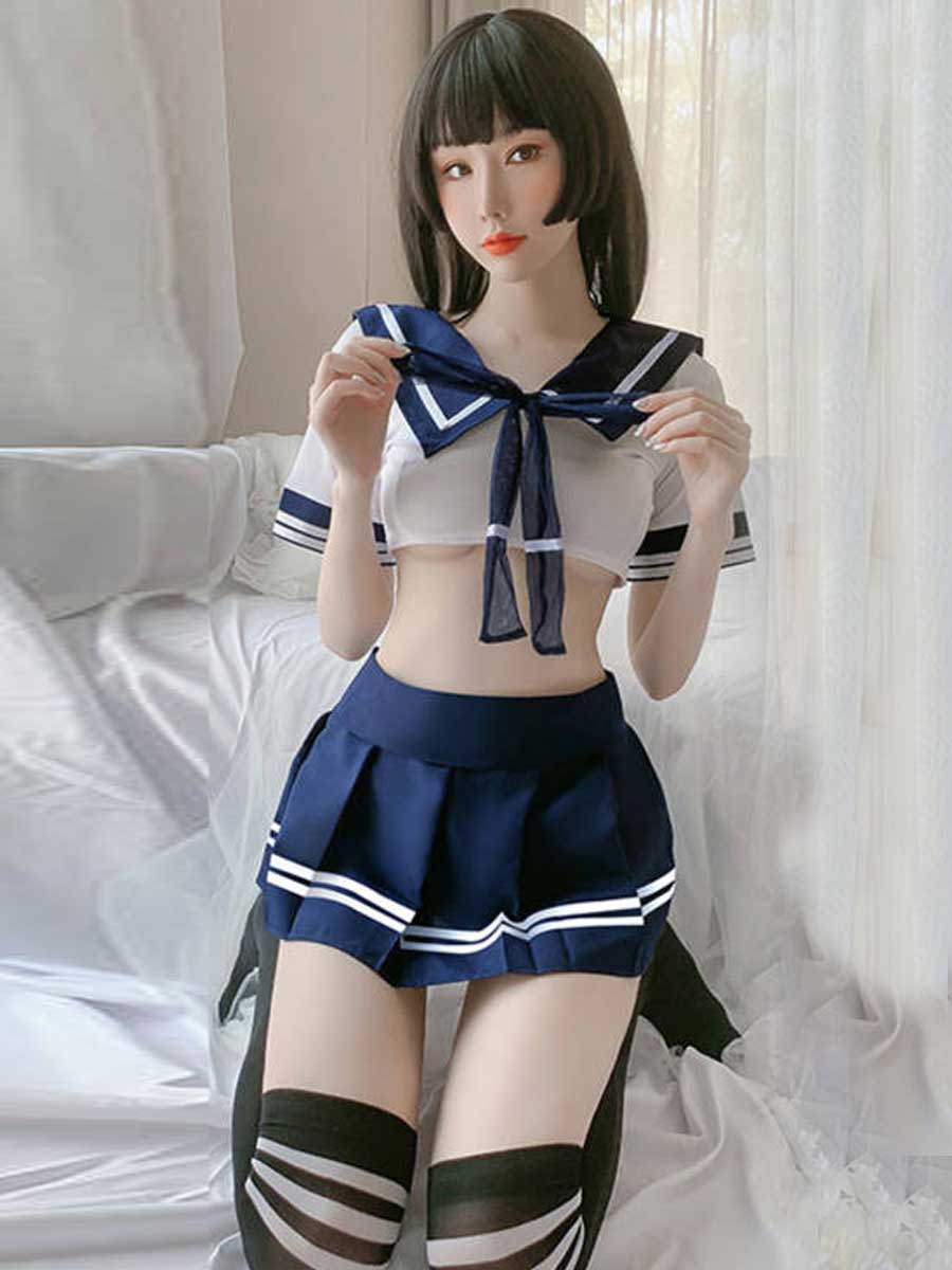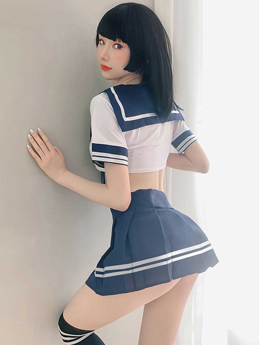 Design: Anime girls underwear: kawaii sailor outfit set, navy collar and mini stripe pleated skirt, you will be a girl from anime