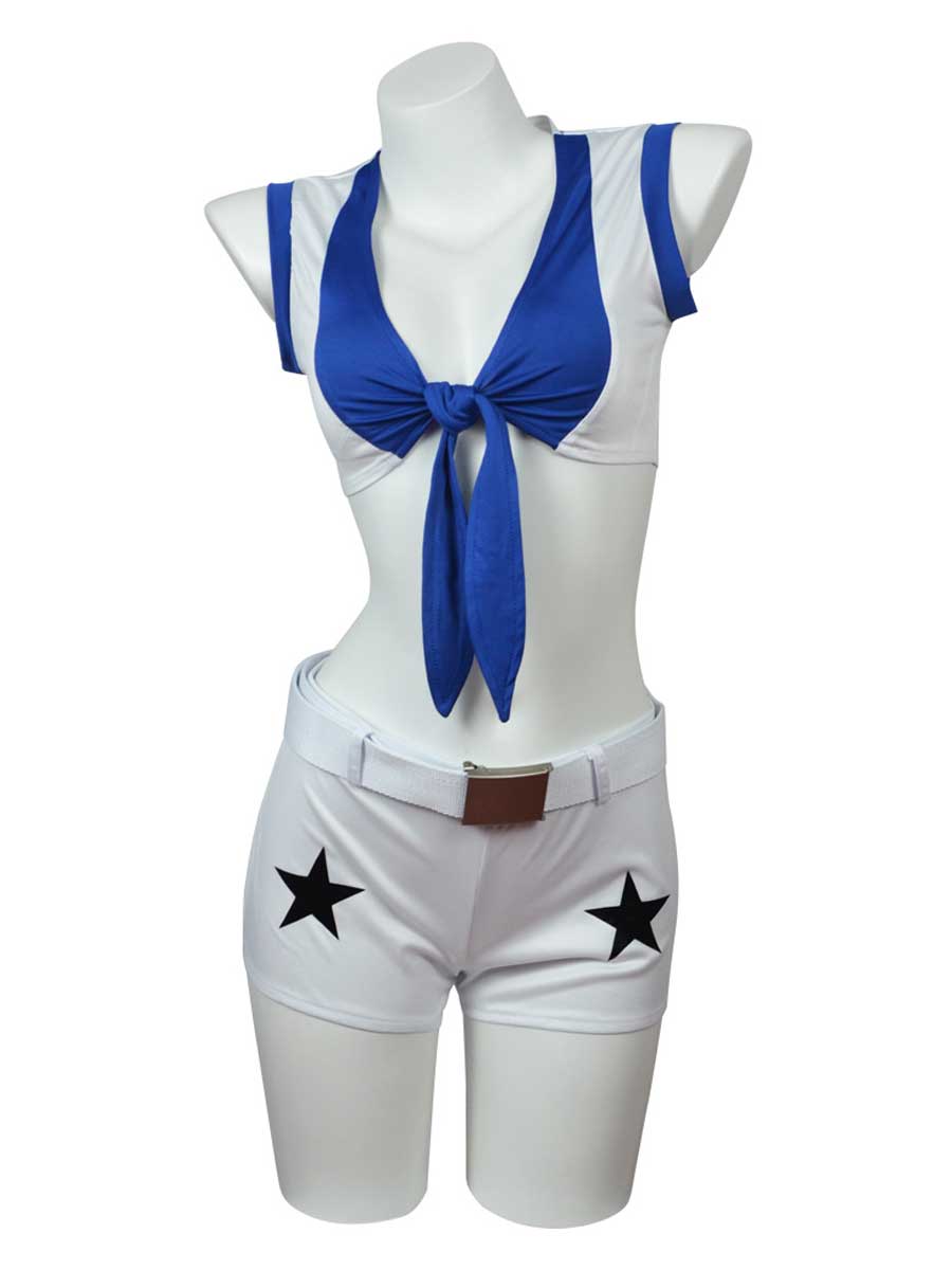 Package Including: 1x Blue Tops+1x White Daisy Dukes+1x Belt