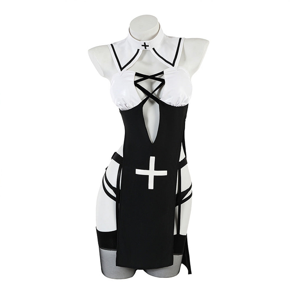 Package Including: 1* Nun Dress+1* Habit Headpiece+1* Panty+1* Collar+1 pair of Stocking