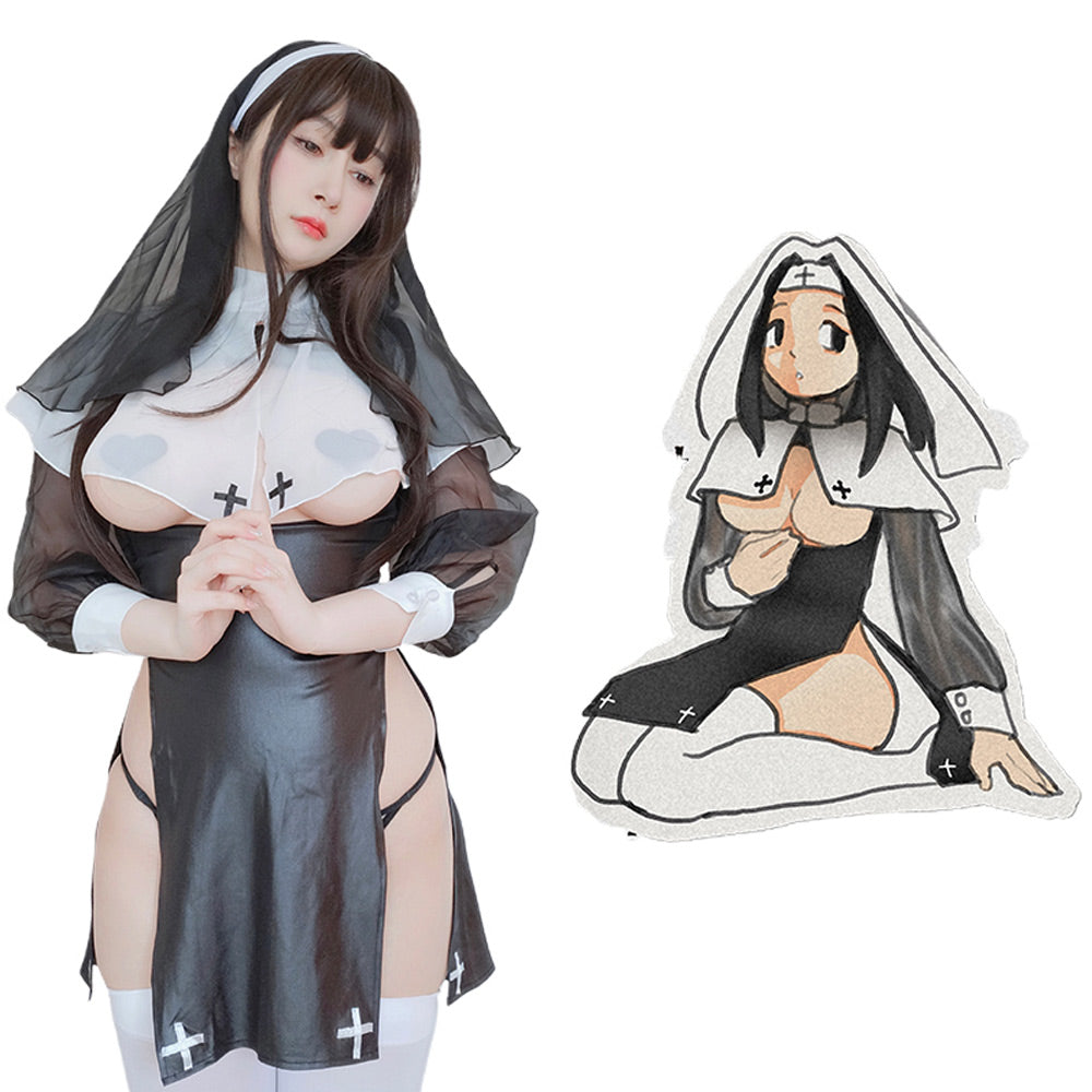Package Including: 1* Nun Dress+1* Habit Headpiece+1* Collar+1* Panty+2* Pasties