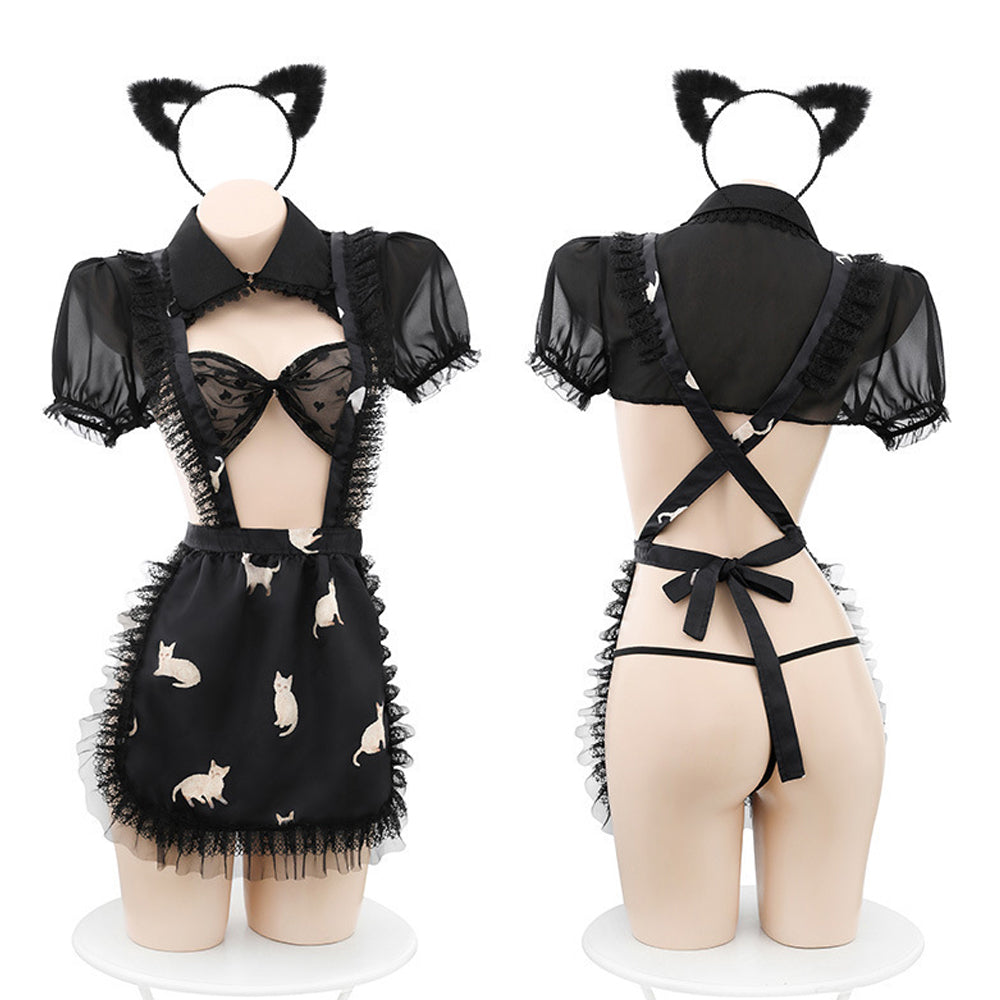 1x crop top+1x suspender apron+1x cat ear headpiece+1x panty