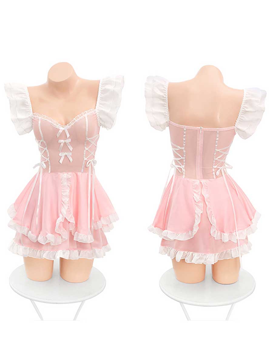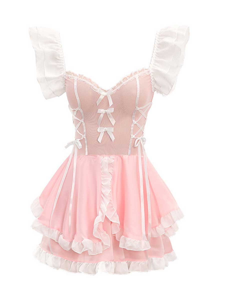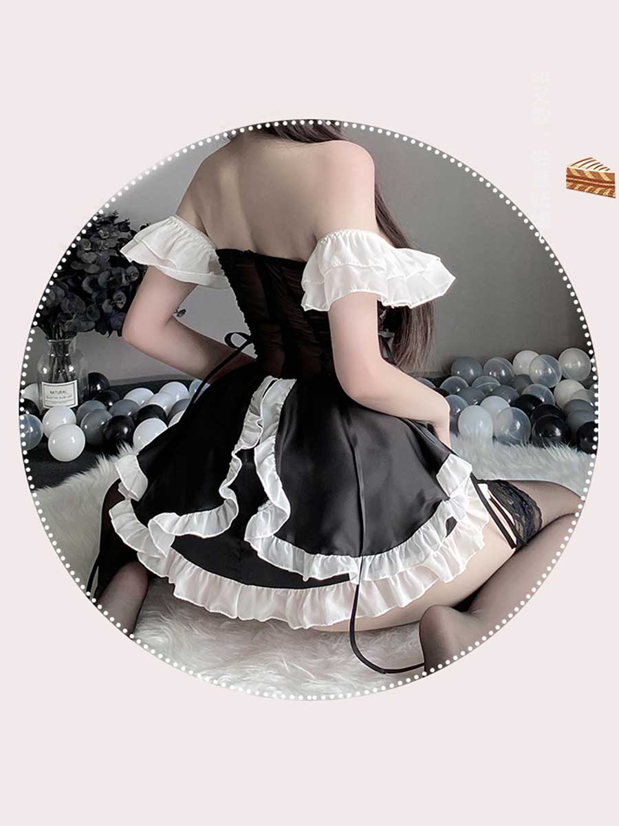 Package Including: 1x maid lingerie dress+1x panty+1x headpiece+1 pair of stocking