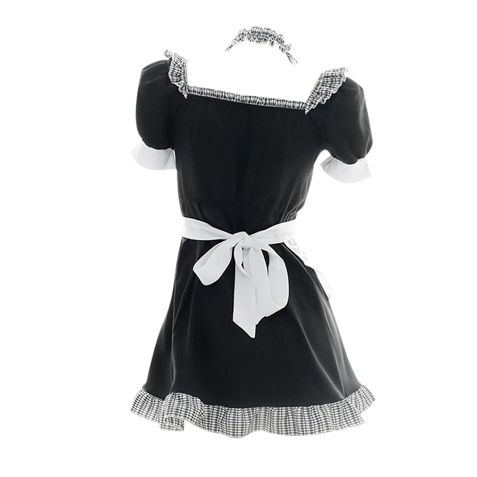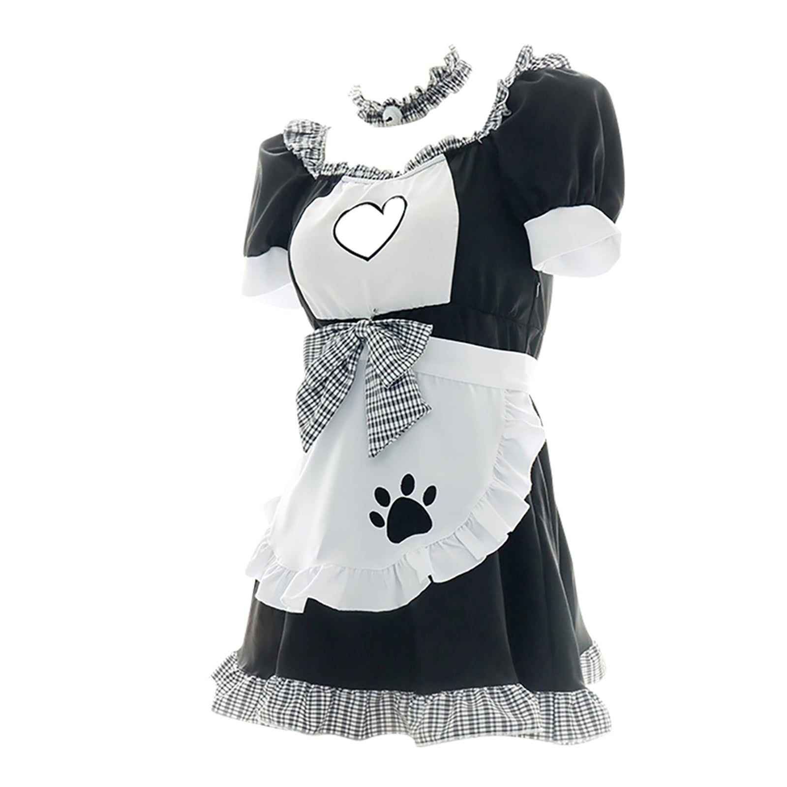 Product SPU: CS2L14718 Brand: Asrrss Color: Black+White Material: Polyester Size: S, M, L Product Measurement: Length: 24.8in, Bust: 35.4in, Recommended weight for 88-137lbs, height for 5'08"- 5'57" Pattern: Color Block Type: Neckline:SquareNeck Sleeve Length: Short Sleeve Design:Asrrss Ruffle Trim Maid Lolita Costume Dress with Apron featuring a black and white dress with ruffled detailing, front heart cut-out, short puff sleeve, plaid bow accent, side zipper up closure, a white apron with embroidery cat paw, and a flirty hemline and a mini length. Occasion:This classic frenchmaid cosplay outfits is perfect for cosplay, halloween, special day gift, valentine's day gift, evening party, cam girl party, anime maid costume accessories, wedding funny dress-up accessories, photography, fun nights costumes, birthday party, animal cosplay, Beer Festival, neko maid cosplay halloween and so on. Package Including:1 maid dress+1 apron+1 choker+1 bow