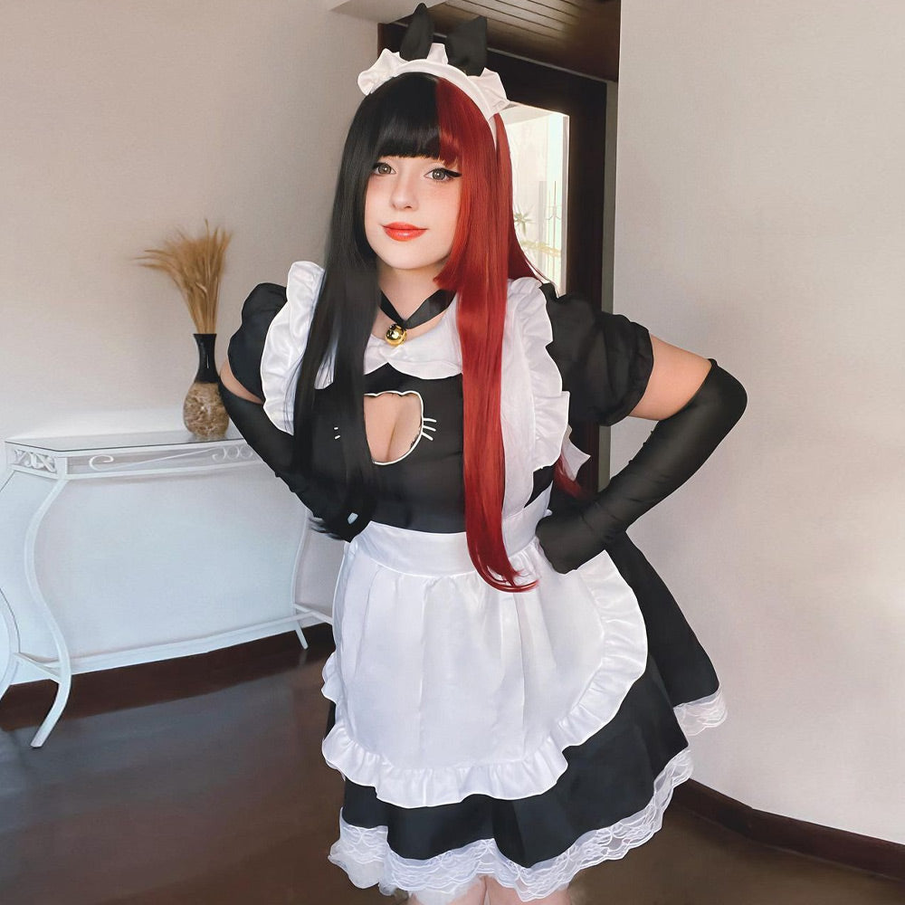Product SPU: CS2L14556 Brand: Asrrss Color: Black Material: 97% Polyester, 3% Spandex Size: S, M, L Weight:Recommended weight for 88-132lb Pattern: Color Block Type: Neckline: Lapel Neck Sleeve Length: Short Sleeve Design: This Neko Maid Costume featuring a black and white dress, a cut-out bust panel with cat embroidery, a lapel neckline with short ruffled sleeves, a back zipper up closure, and a lace ruffled trim. A matching white suspender apron skirt, ruffled striped hem, back ties closure. Occasion: Good choice for Christmas, Valentine's Day, Date nights, Cosplay Party, Sleepwear, Nightwear. Perfect for bedroom, bathroom, honeymoon, or wedding night. Package Including: 1x maid dress+1x headpiece+1x apron+2x wristbands+1x choker