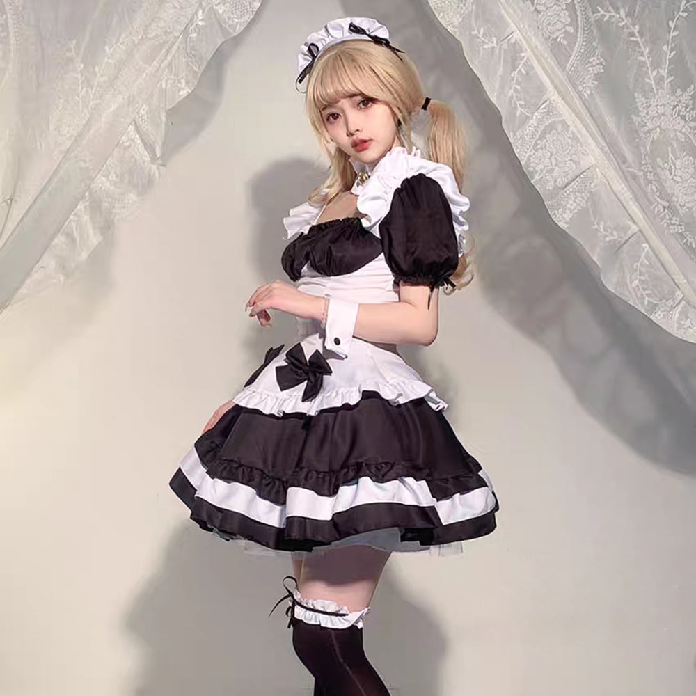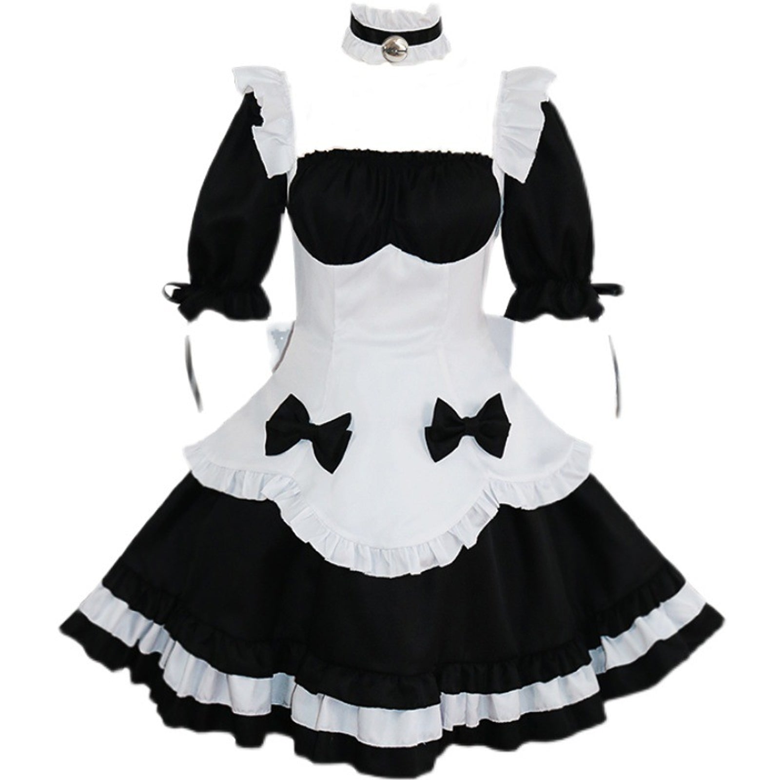 Sleeve Length: Short SleeveDesign: Asrrss sexy maid costume featuring a black and white top with ruffled detailing, short puff sleeve, white bodice with double black bow accent, back zipper up closure, and a matching flirty mini skirt and tiered hemline.The perfect addition to Lolita-inspired cosplay, this french maid costume is designed for comfort and maximum flounce. With its playful silhouettes and quality construction, you'll be ready to serve up some stylish fun.