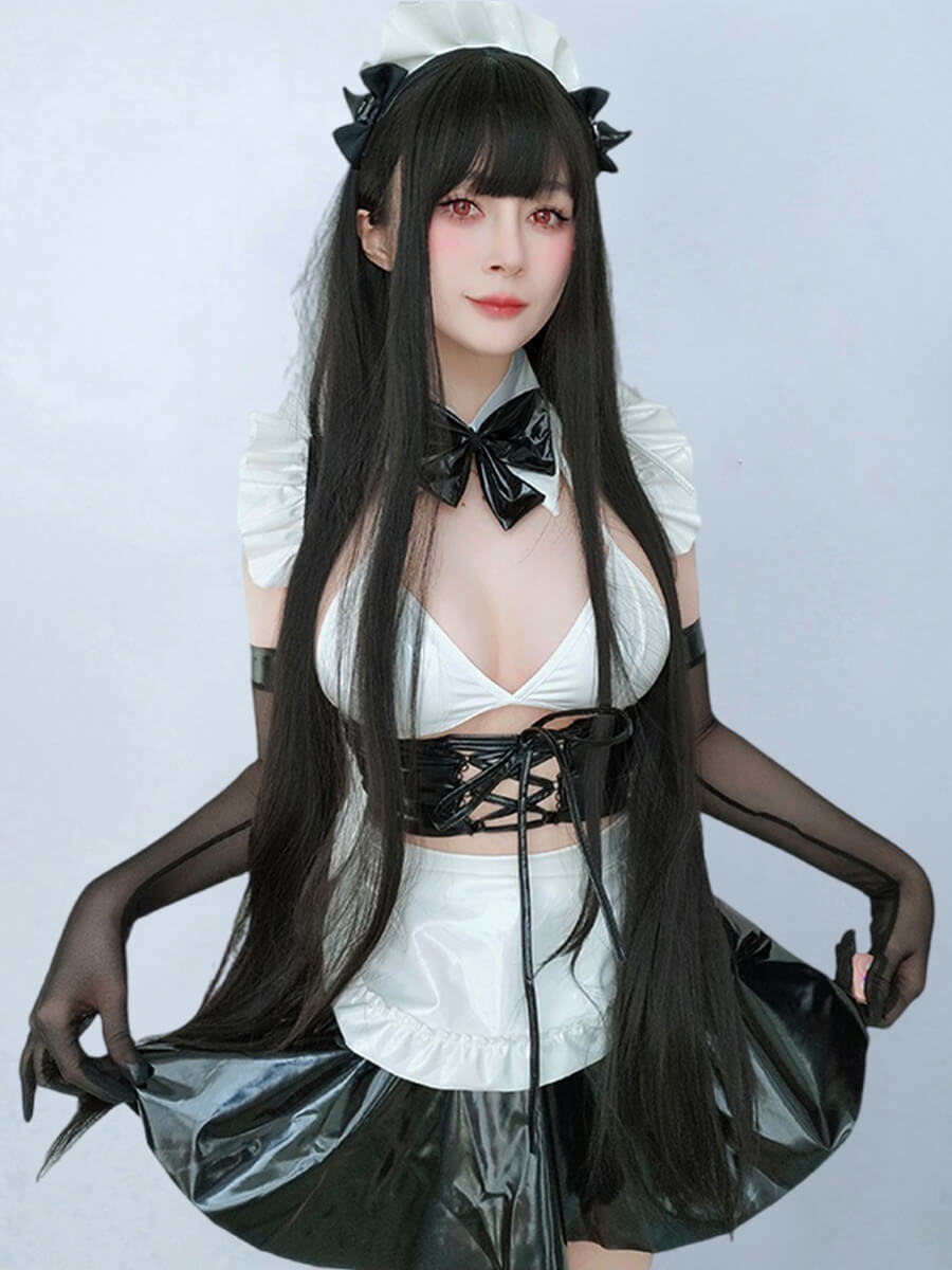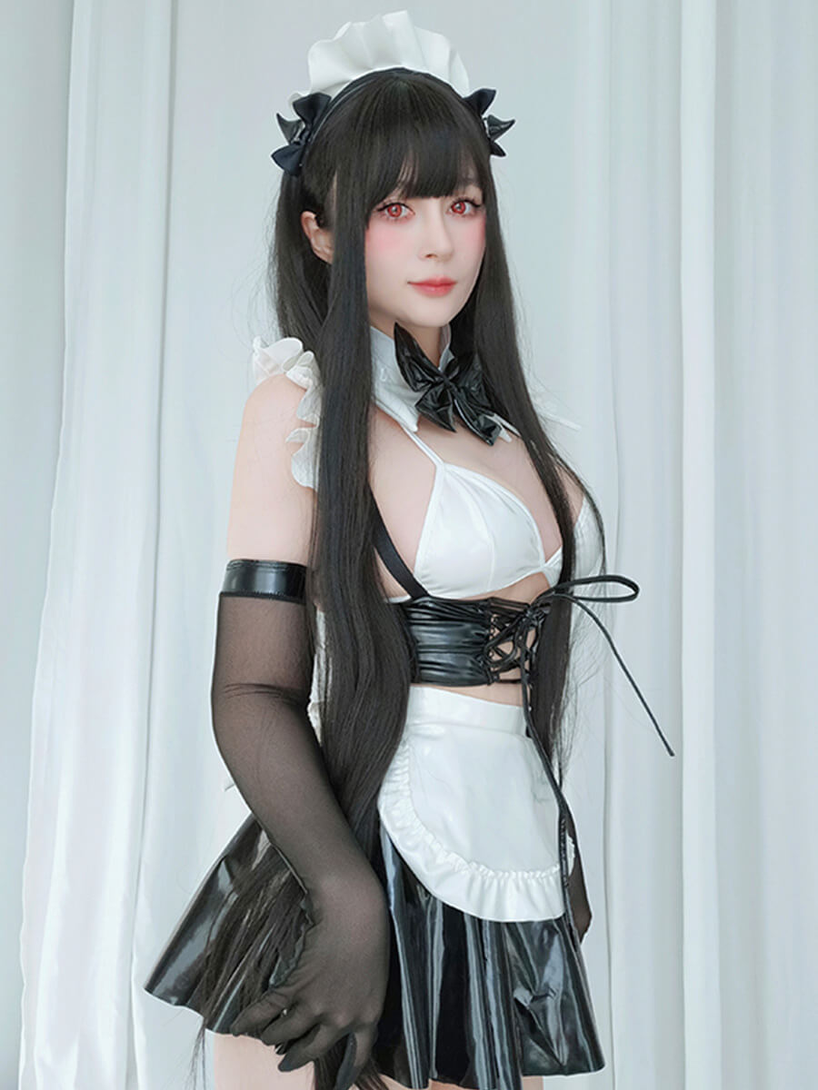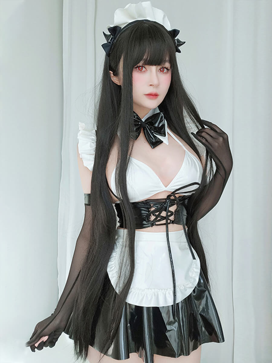 Product SPU: CS2L15656 Brand: Asrrss Color: White/Black Material: PU Leather, Polyester Size: S, M, L Weight: Recommended weight for 88-132lbs Pattern: Plain Type: Sleeve Length: Sleeveless Design:Asrrss sexy maid costume featuring a white micro triangle bra, a latex black lace-up waist corset, a matching mini skirt and a matching white maid apron with back tie closure. Occasion:This maid cosplay outfit is perfect for cosplay, halloween, special day gift, valentine's day gift, evening party, cam girl party, anime maid costume accessories, wedding funny dress-up accessories, photography, fun nights costumes, birthday party, animal cosplay, Beer Festival, neko maid cosplay halloween and so on. Package Including: