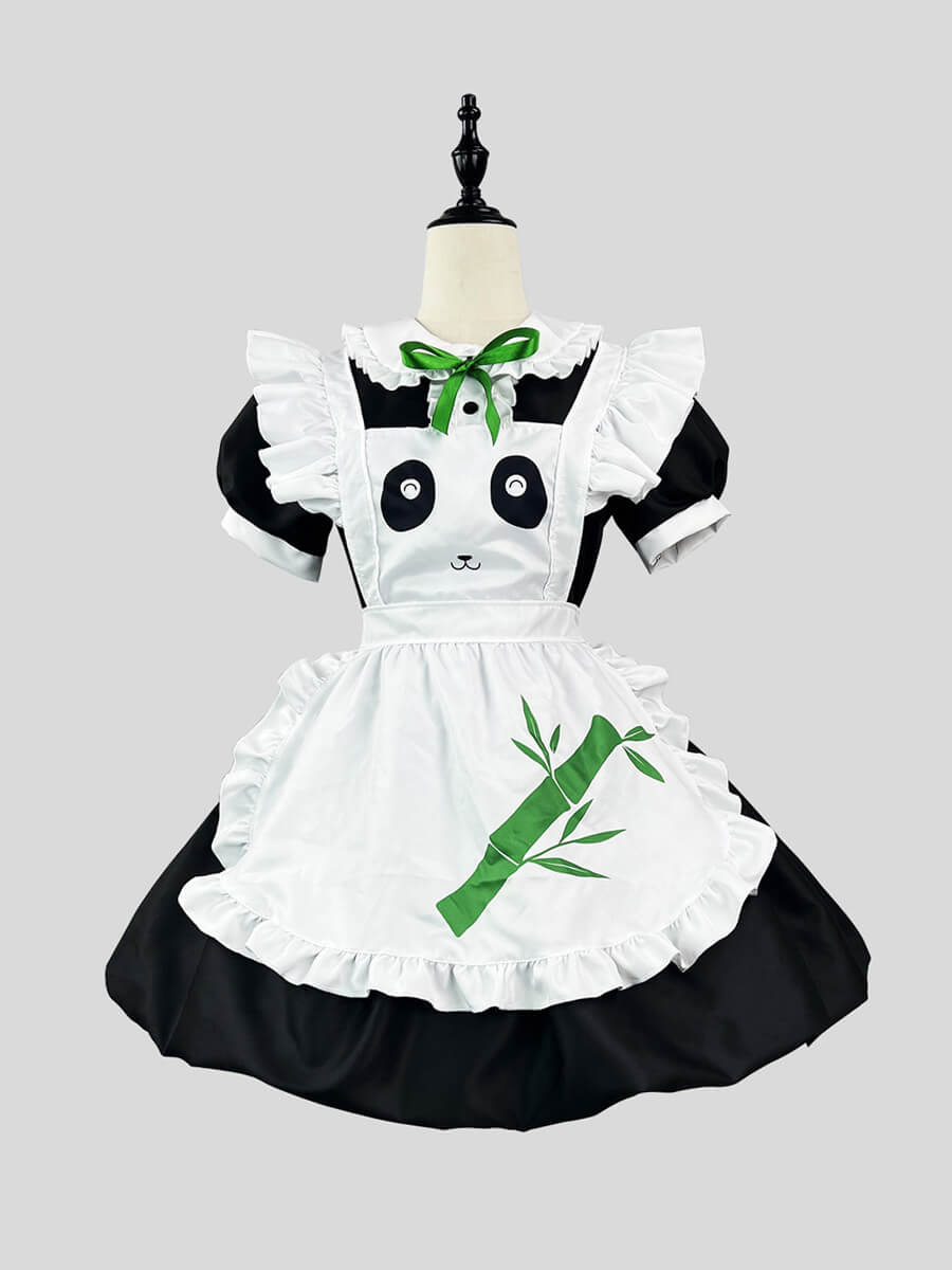 Product SPU: CS2L15575 Brand: Asrrss Color: Black/White Material: Polyester Size: S, M, L, XL, 2XL, 3XL, 4XL, 5XL Weight: Recommended weight for 88-158lbs Pattern: Panda, Bamboo Type:Maid Neckline: Lapel Neck Sleeve Length: Short Sleeve Design:Asrrss sexy maid costume featuring a black dress with ruffled detailing, short puff sleeve, back zipper up closure, and a matching white apron, panda face and bamboo printed, tie back closure. The perfect addition to Lolita-inspired cosplay, this french maid costume is designed for comfort and maximum flounce. With its playful silhouettes and quality construction, you'll be ready to serve up some stylish fun. Occasion:This maid cosplay outfit is perfect for cosplay, halloween, special day gift, valentine's day gift, evening party, cam girl party, anime maid costume accessories, wedding funny dress-up accessories, photography, fun nights costumes, birthday party, animal cosplay, Beer Festival, neko maid cosplay halloween and so on. Package Including: 1 dress+1 apron+1 headpiece+2 wristbands+2 thigh rings+1 green ribbon