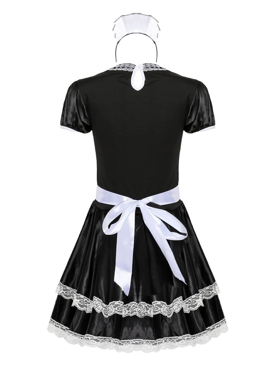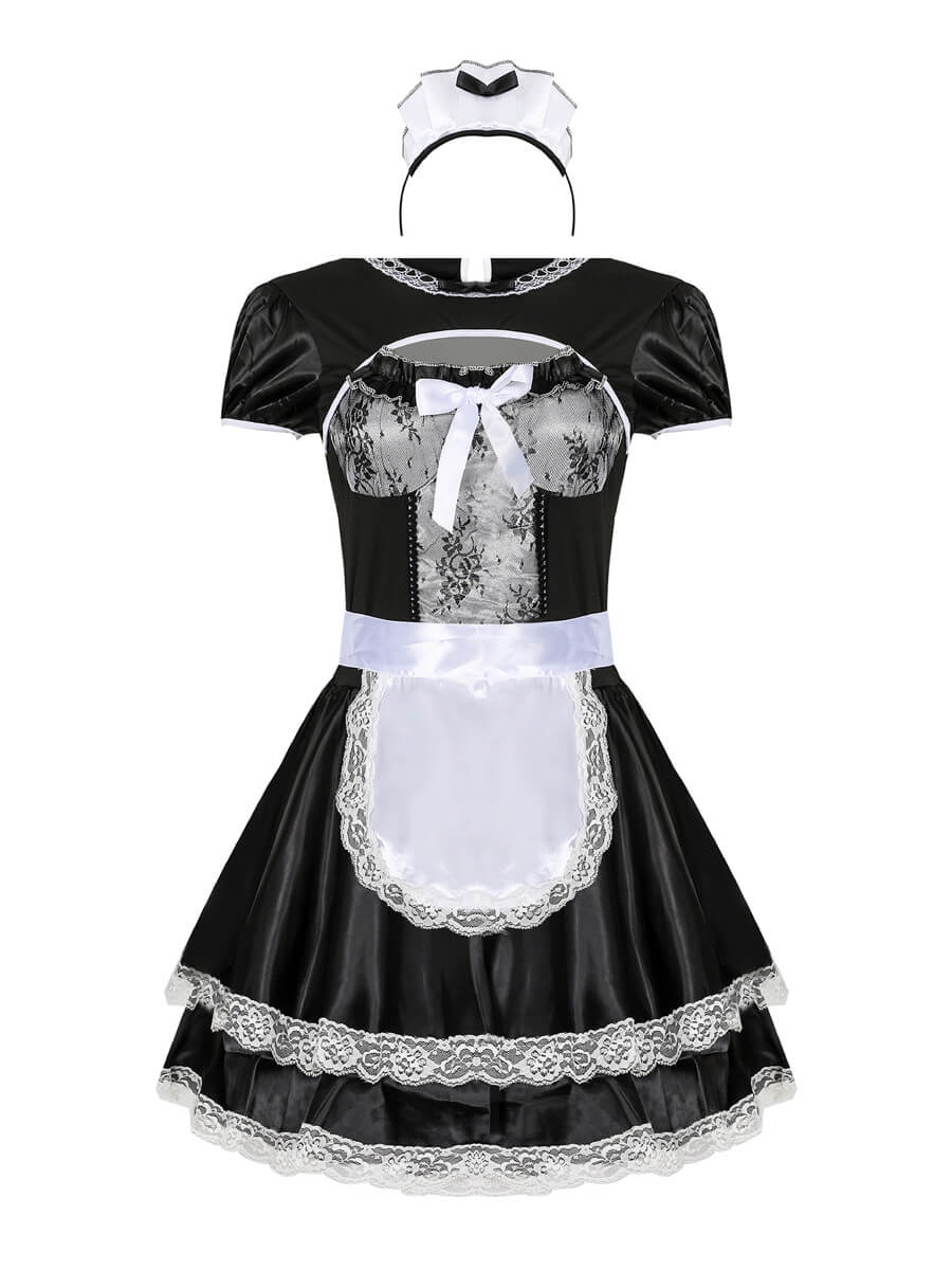 Product SPU: CS2L15649 Brand: Asrrss Color: White/Black Material: Polyester Size: M, L, XL Weight: Recommended weight for 88-145lbs Pattern: Plain Type: Neckline: Round Neck Sleeve Length: Short Sleeve Design:Asrrss sexy maid costume featuring a black and white mini dress with lace detailing, short sleeve, an open bust panel, white bow accents, and a matching white maid apron and back tie closure. Occasion:This maid cosplay outfit is perfect for cosplay, halloween, special day gift, valentine's day gift, evening party, cam girl party, anime maid costume accessories, wedding funny dress-up accessories, photography, fun nights costumes, birthday party, animal cosplay, Beer Festival, neko maid cosplay halloween and so on. Package Including:1 maid dress+1 apron+1 headpiece