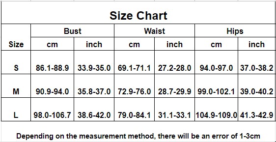 Product Measurement: Bust: 29.9in-33.8in, Hips: 29.1in-40.9in, Recommended weight for 88-132lbs