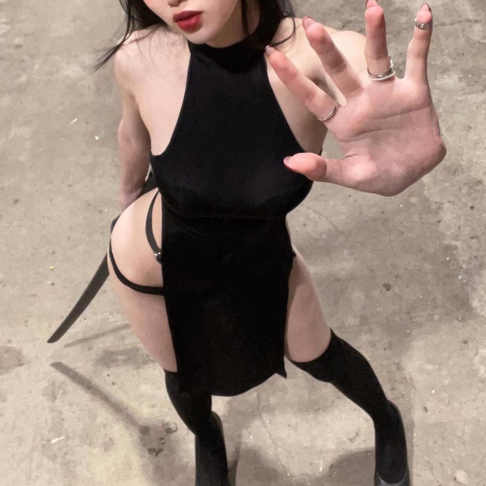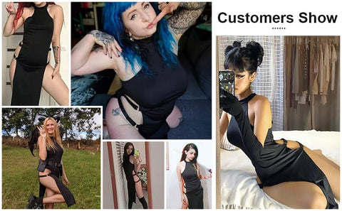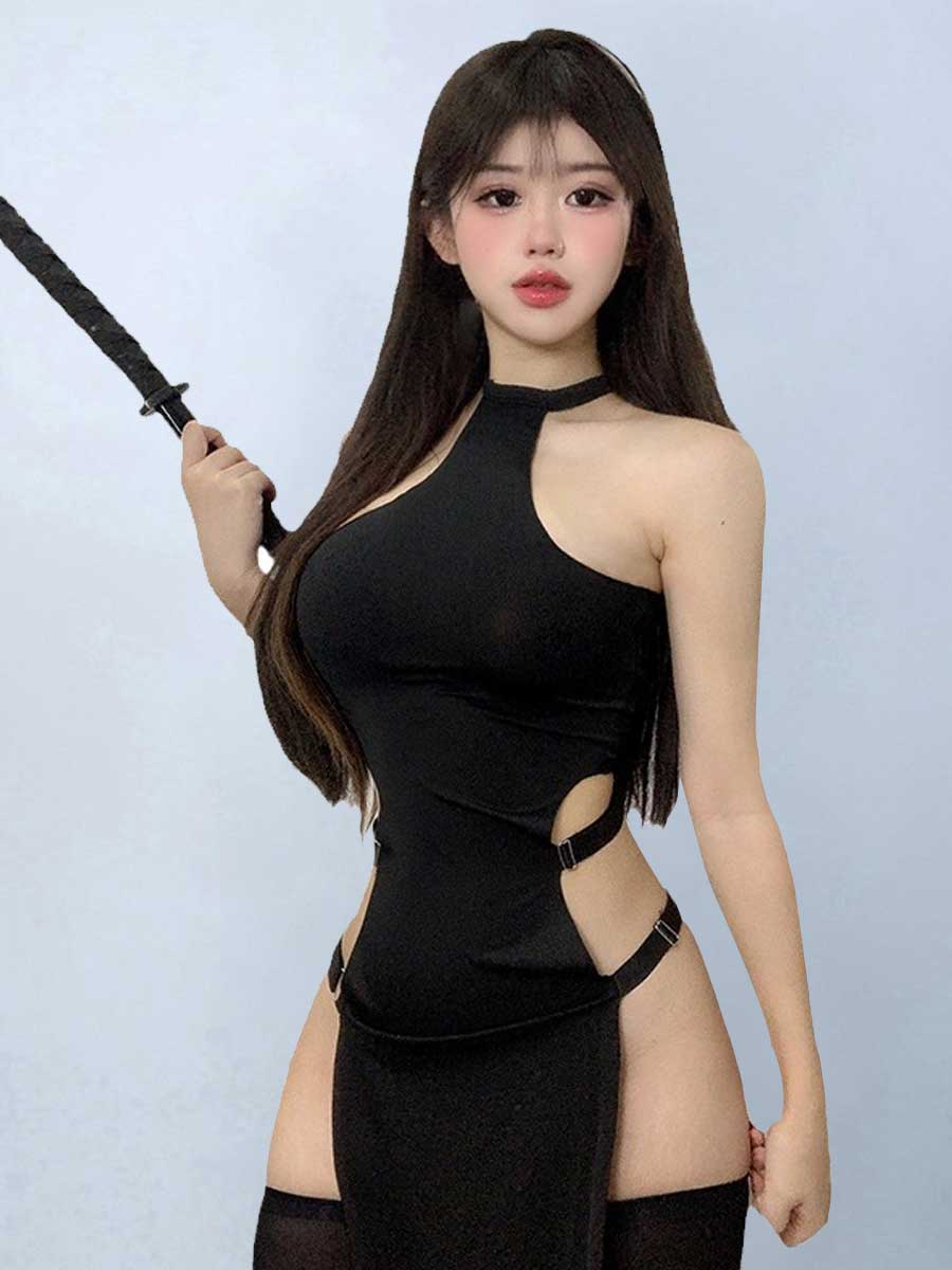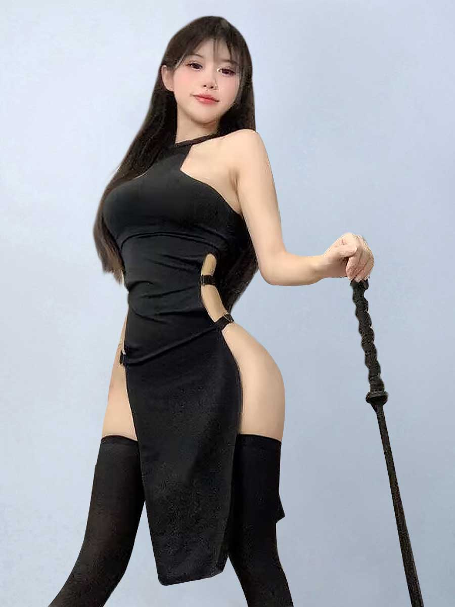 Asrrss Sexy High Split Chinese Dresses show your perfect body curve. Halter Neck, High waist, side slits and shiny Metal, with a hollow look, looks very sexy and can win very high attention.Sexy Cut: Hot High split with adjustable b