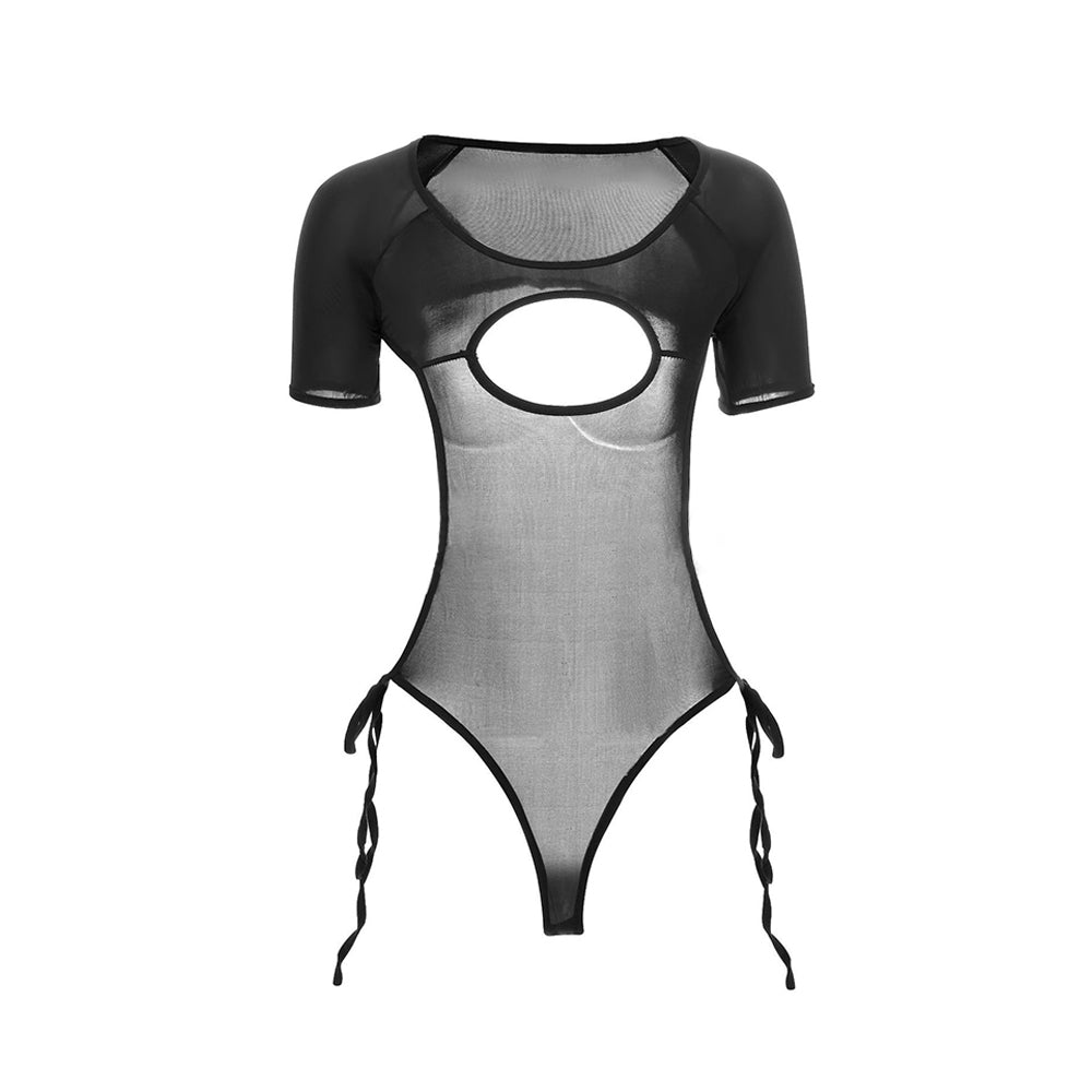 Design: This hollow bodysuit featuring a high keyhole neckline, short sleeve, an ultra high cut leg, a tie back closure, cut-out and side tie at waist, an open crotch, and a cheeky cut back, easy to put on and take off.