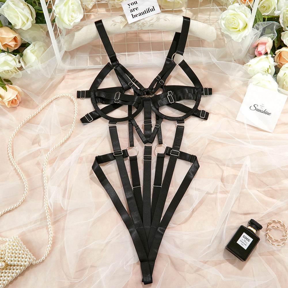 Design: This exclusive Punk Body Harness Teddy Lingerie featuring strappy open cup underwire, metal O-ring accents, adjustable spaghetti straps, a hook back closure, an open strappy bodice, a solid crotch panel, and an open back with booty framing straps.
