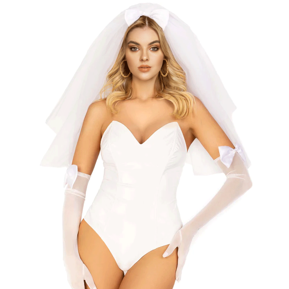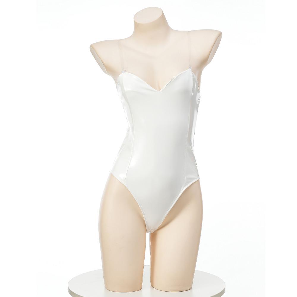 Design: This exclusive bodysuit features a a white wet look bodysuit with clears straps,