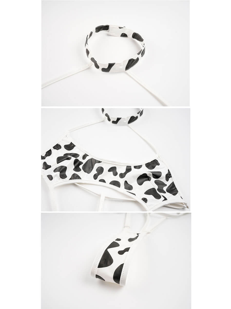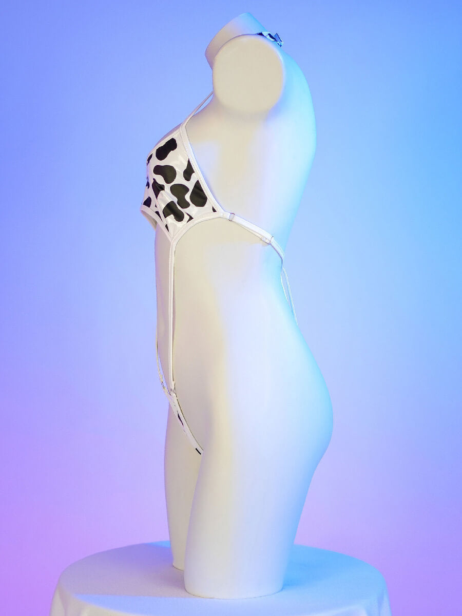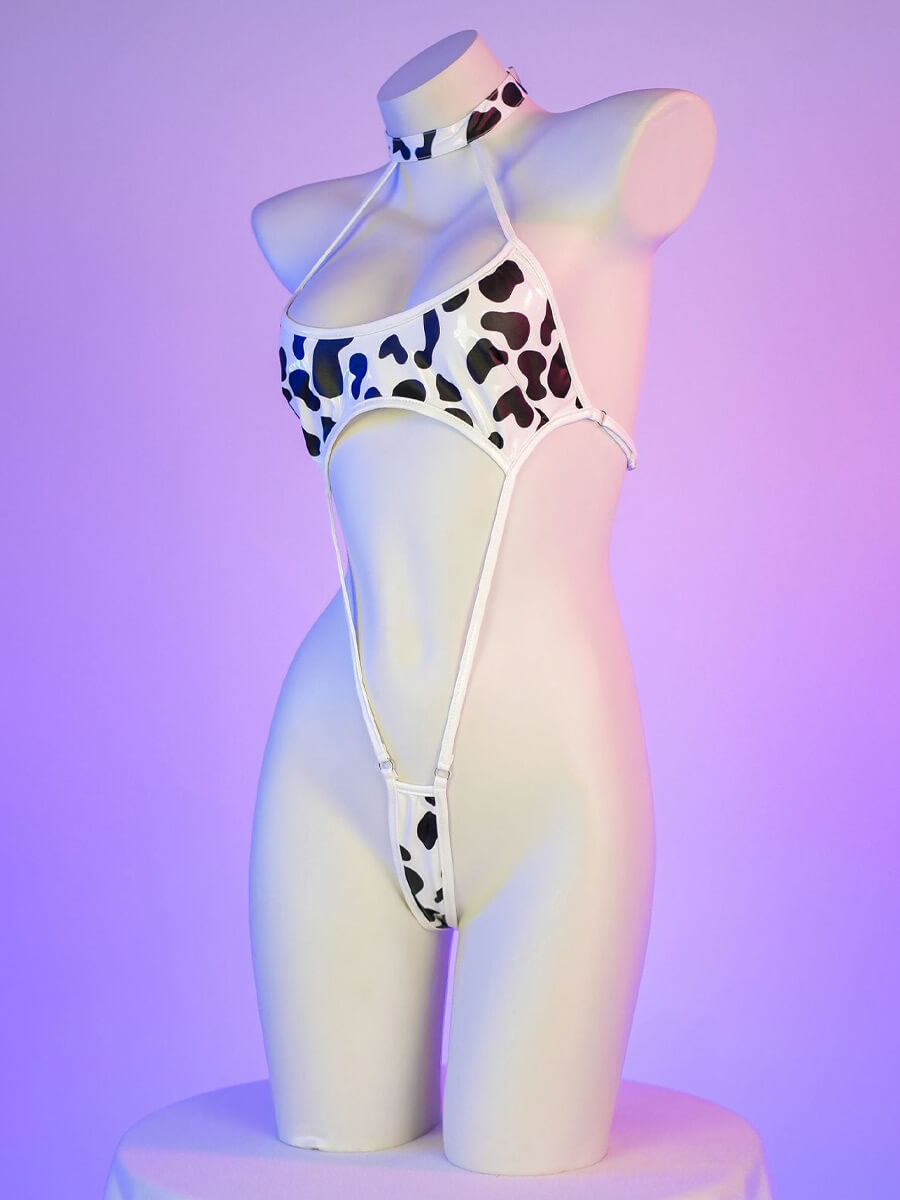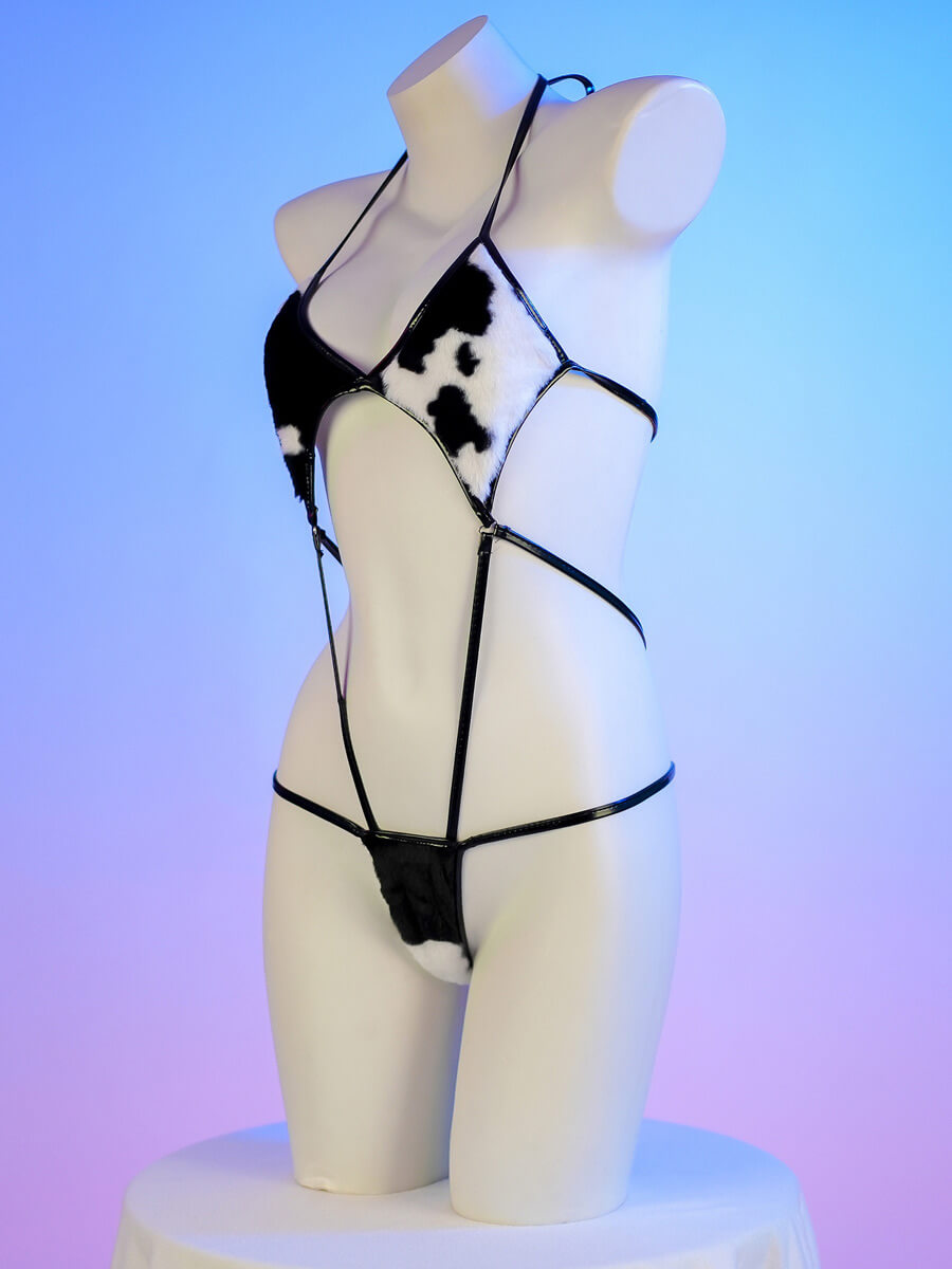 レースボディスーツ ストラップ付きカウ柄ボディスーツ
