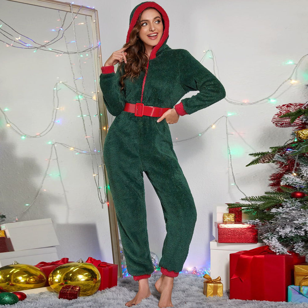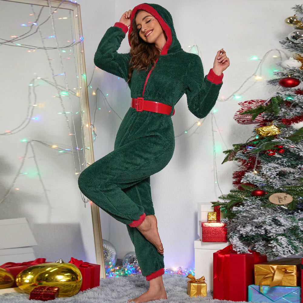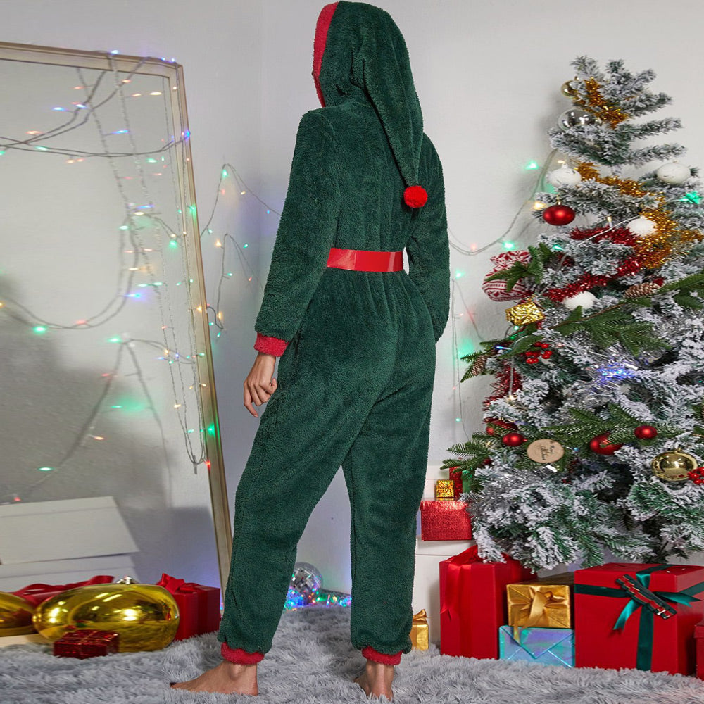 Design: This Naughty Elf Onesie costume featuring a green fleece jumpsuit with a zip up closure, an attached hood with a red pompom, and a belt, the perfect costume for a festive night-in, this cozy and comfortable one-piece is perfect for keeping warm during the winter season.