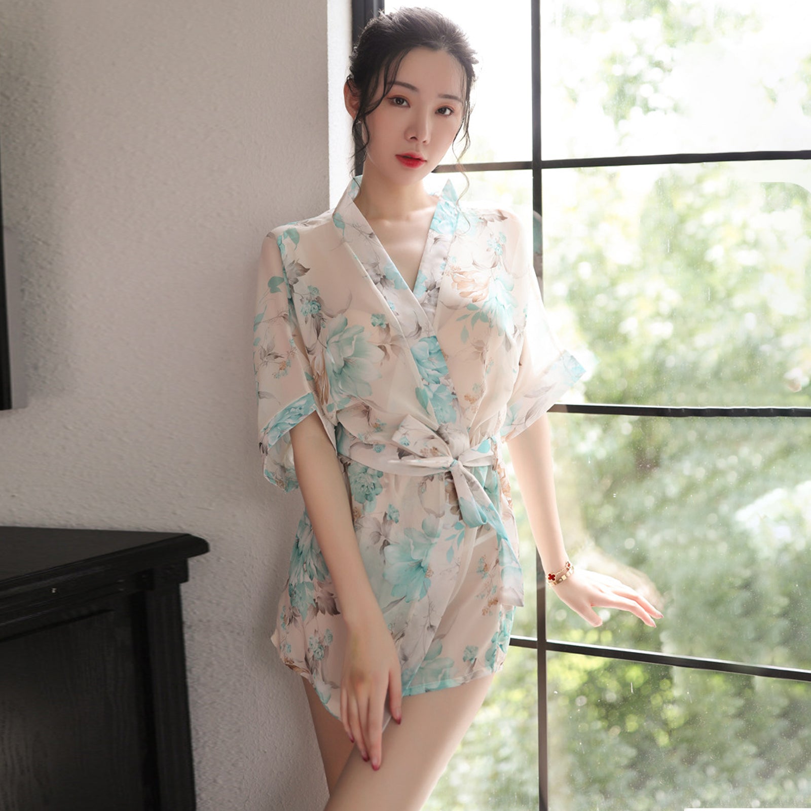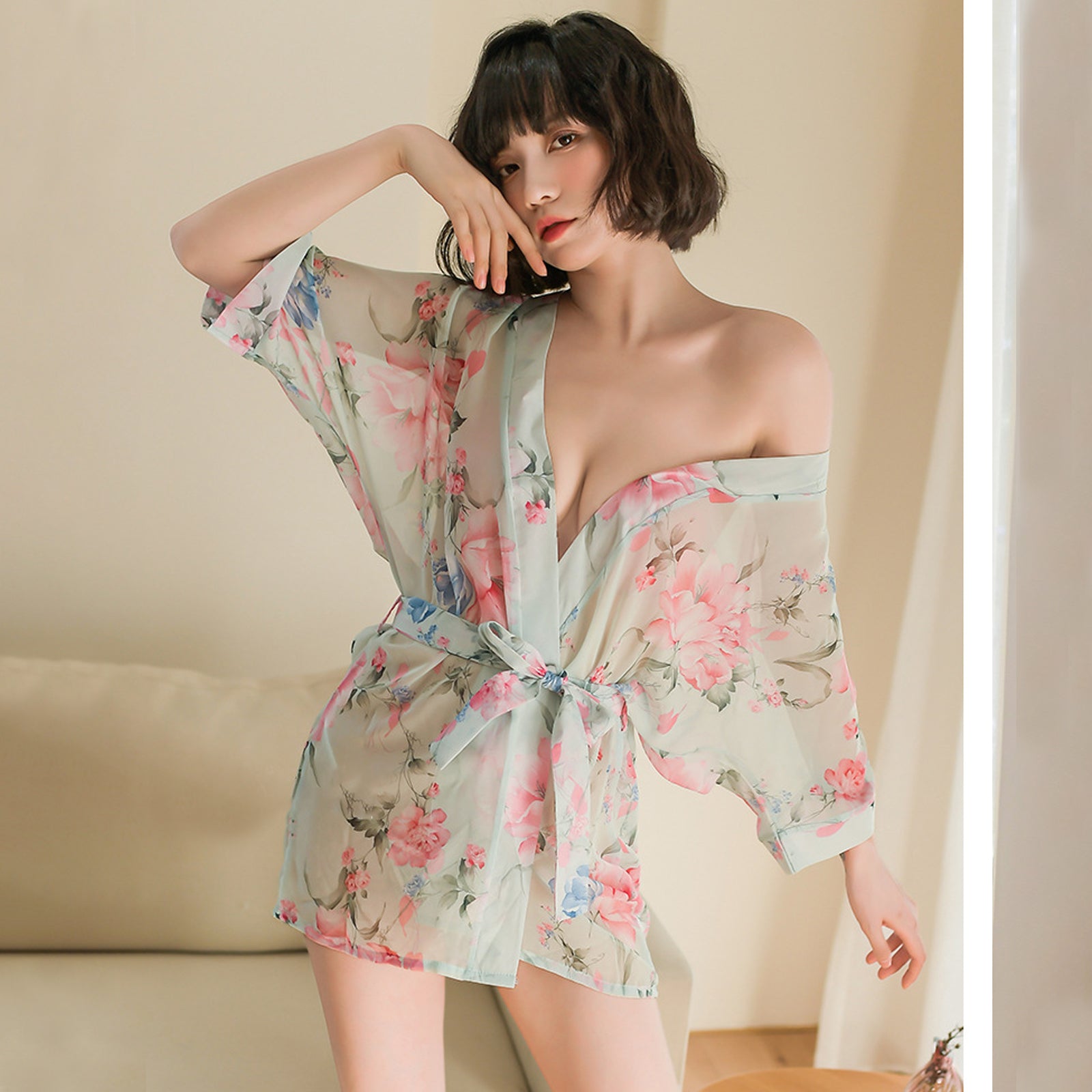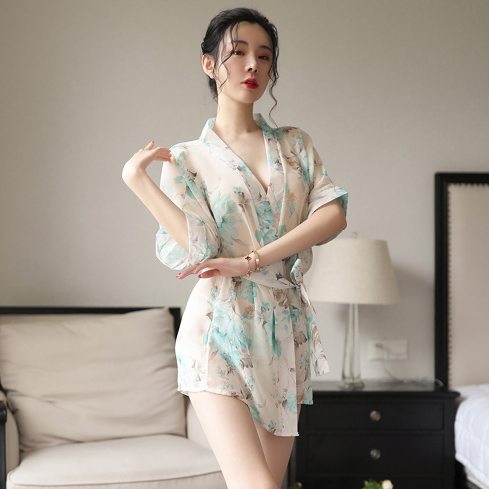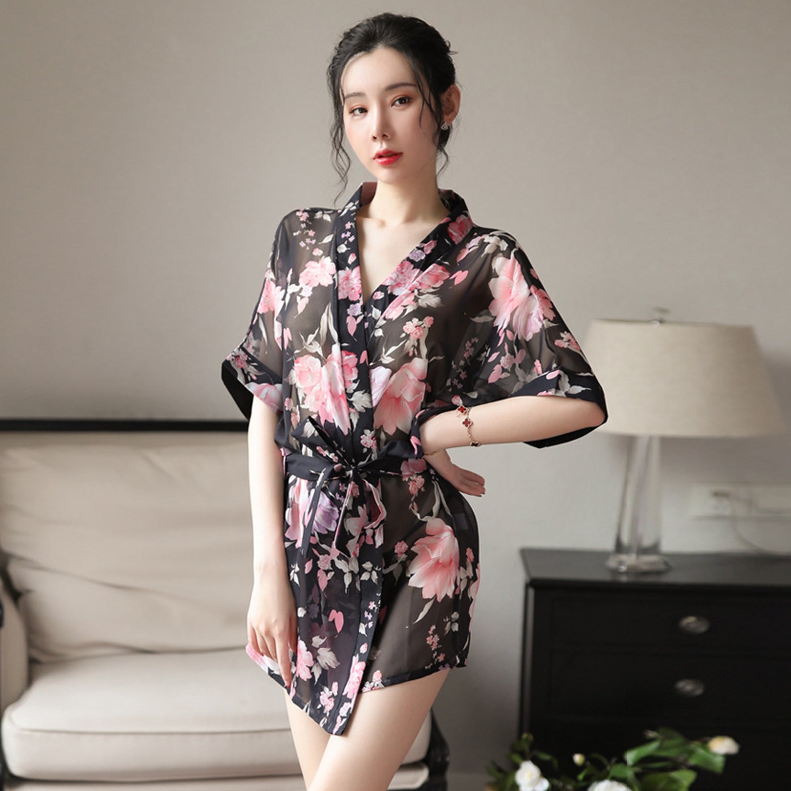 Design: Asrrss japanese kimono costume featuring sheer chiffon kimono robe, deep v neck, half sleeve, removable belt, mini length, super soft breathable robes for women and fashion style.You can also wear it open without the belt for more comfort, takes you comfy and relaxation.This intricate floral print on this women's kimono pajamas adds interest to your life and makes you look younger and sexier.Occasion: This sexy kimono robe is suitable for sexy pajamas, Valentine's Day, wedding dinners, honeymoon gifts, Halloween cosplay costumes, sexy cosplay underwear, exotic pajamas, adult bedroom cosplay costumes, anime cosplay costumes, club costumes.Package Including: 1 * K