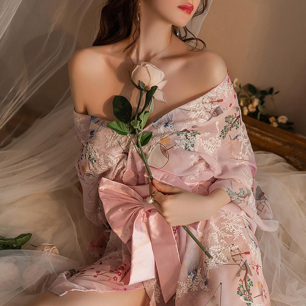 Design: Semi-transparent but still offers some coverage. Show off your curves and figure while staying comfortable. Wrap around gorgeous Japanese kimono belt (obi) for a snatched waist. Kimono with wide sleeves and a cute bow at the back. This stylish print on this women's kimono pajamas adds interest to your life and makes you look younger and sexier;