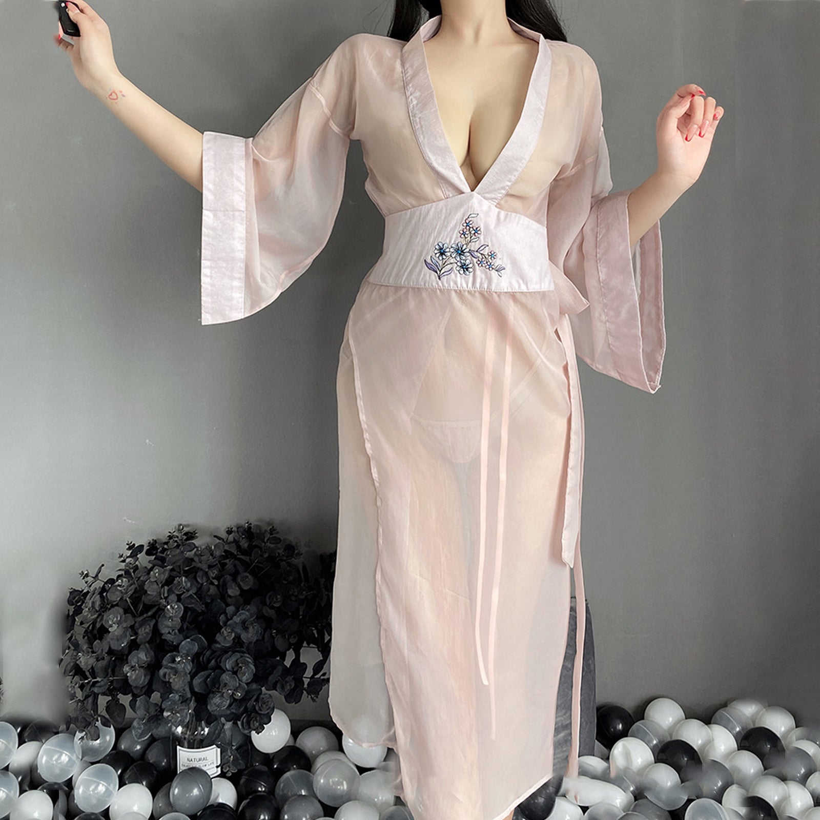 Package Including: 1 * Kimonos Maxi Dress+1 * T-String Panty
