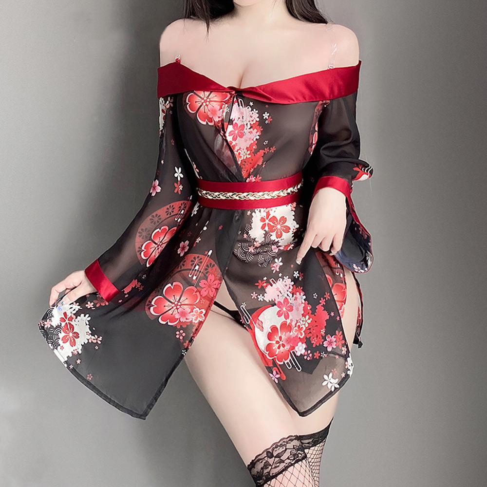 Package Including: 1* Kimono Robe + 1* Belt+1* Panty